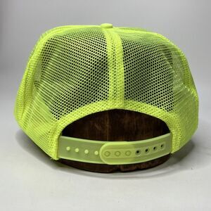 This vintage Nissin trucker hat is a must-have for any casual occasion. The neon yellow color and adjustable mesh back make it a stylish and comfortable accessory. Perfect for men who want to add a touch of retro to their wardrobe, this hat is made in China and features the Nebraska Department of Roads logo. The breathable fabric and snapback closure ensure a comfortable fit for all-day wear. Whether you're running errands or hanging out with friends, this hat is the perfect addition to your outfit.