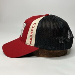 Style: Classic baseball cap style with a structured front and breathable mesh back. Authenticity: Officially licensed Nebraska Huskers apparel. See Photos: Please refer to the provided photographs for a complete visual description of the hat's condition, including the wrinkling on the front panel. Photos are considered part of the description. Keywords: Nebraska Huskers, Huskers, Cornhuskers, Baseball Hat, Cap, Red, White, Black Mesh, Embroidered