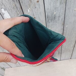 It's a needlepoint O Christmas Tree theme front with a green Velvet Back. It's in good pre-owned condition