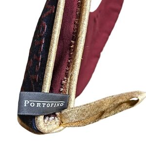 Add charm to your holiday décor with this Portofino tapestry Christmas stocking featuring cheerful elves carrying a Christmas tree and gifts on a dark blue background with "Merry Christmas" stitched at the top. Trimmed in festive gold and backed with deep red lining, this 18" stocking offers a rustic yet whimsical feel perfect for traditional or novelty-themed holiday styles.