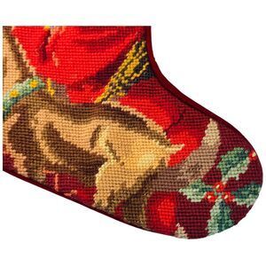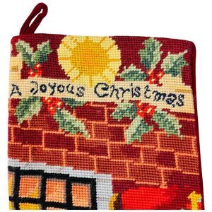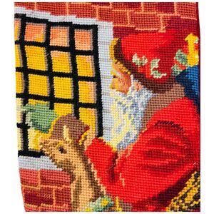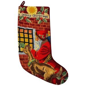 Vtg Needlepoint Christmas Stocking Wool Stocking Santa Red Joyous Petit Point