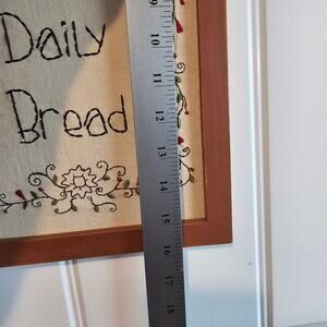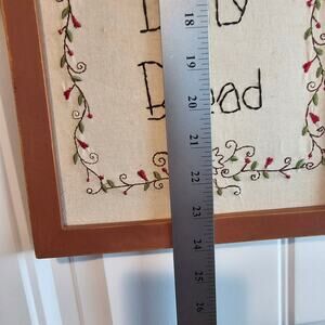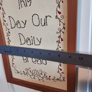 Vtg Needlepoint Prayer Picture Give Us This Day Our Daily Bread Rustic Religious