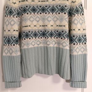 Vintage 90s Y2K Neiman Marcus Light Blue Gray Cashmere Lambswool Angora Designer Fair Isle Icelandic Nordic Preppy Old Money Grandmacore Granny Academia Teacher Soft Cozy Breathable Pullover Sweater with Ribbed Hem and Subtle Glittering