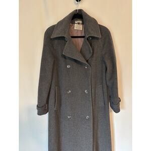 Vtg Neiman Marcus Coat 8 Womens Gray Long Double Breasted Cashmere Wool Pockets