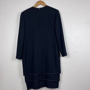 Vtg Neiman Marcus Shift Dress Womens Medium Wool Tiered Ruffle Hem Witchy Modest