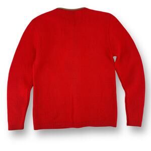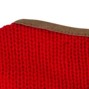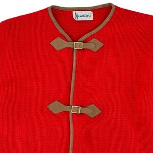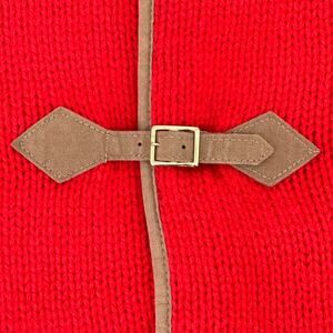 Vtg Neusteters Cardigan Sweater Sz Small Red Tan Faux Suede Buckle