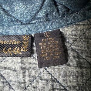 Vtg New Direction Women's L Floral Embroidered Blue Quilted Jacket Shacket Button Up Long Sleeve. 100% Cotton. *Some thread is coming undone, see photo.