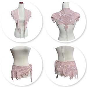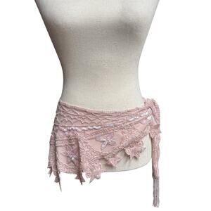 Vtg Newport News Silk Beaded Shawl Wrap Mermaidcore Chappell Roan Pink Sparkle