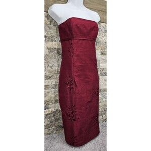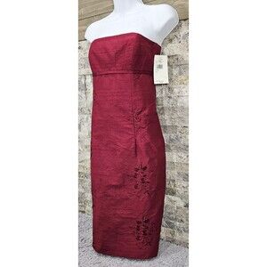 Vtg Nicole Miller Womens Silk Pencil Dress 90s Strapless Empire Red NWT Size 2
