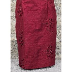 Vintage 90s Union Made in the USA Floral Embroidered 100% Silk Solid Red Strapless Dress by Nicole Miller NYC. This dress is brand new with tags and absolutely stunning!