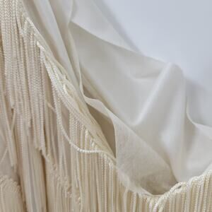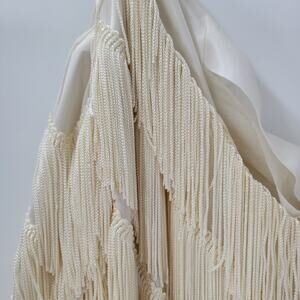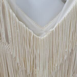 Vtg Nightworks Womens Fringe Dress 16 Cream Layered Cold Shoulder Dolman Midi