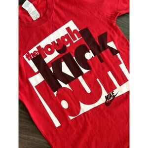 Vtg Nike 80s 90s Red Graphic Tough Kick Butt T Shirt L Single Stitch Made in USA
