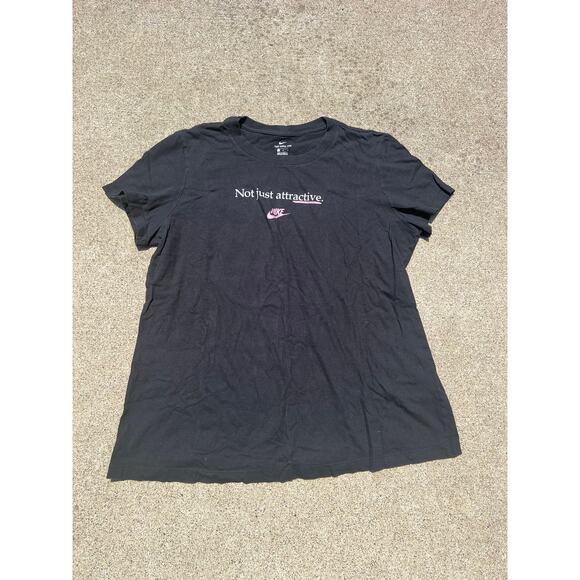 Vtg Nike Blouse Women Sz Large Black Graphic Crewneck Short Sleeve Shirt Casual