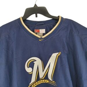 Vtg Nike Milwauke Brewers Team Jacket Pullover Men 2XL Blue Gold Sewn Logo Lined