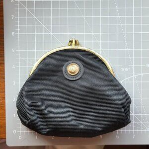 This vintage Albert Nipon micro clutch features a black ribbed design and gold-tone accents. Compact and elegant, it’s ideal for small essentials.