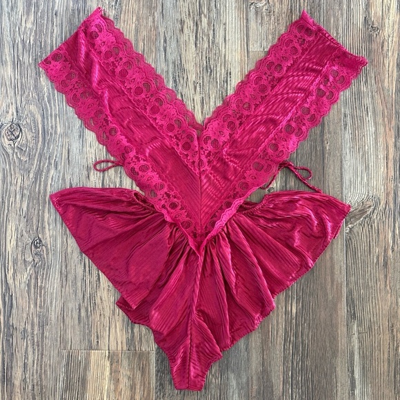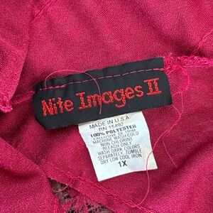 Vtg Nite Images II Lingerie Bodysuit Teddy 1X Side Ties Lace Burgundy Stripes
