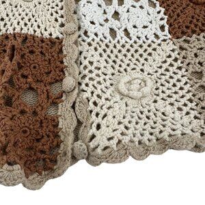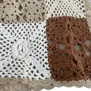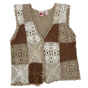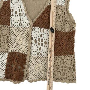 Vtg No Boundaries Size Large Neutral Crocheted Vest Sleeveless Rose Color Block