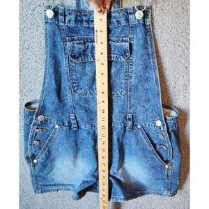 Vtg No Boundaries Women's Overall Shorts Stretch Blue Denim Raver Y2K Sz Medium