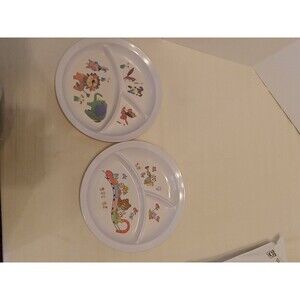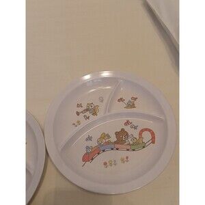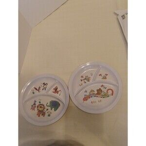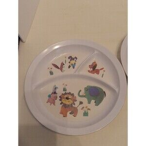 Vtg Noritake Melamine Ware Child's 2 Divided Plates Animals Japan