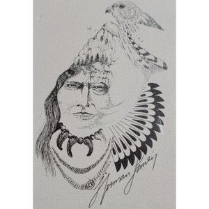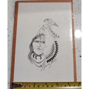 Vintage Norman Lansing UTE Planograph Print Indian Head & Spirit Animal Signed 1982.