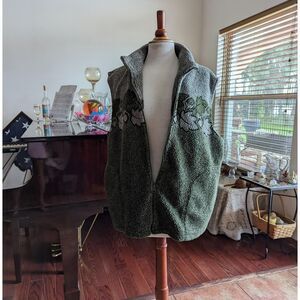 Vtg Northern Reflections green leaves teddy vest Unisex Sz XL