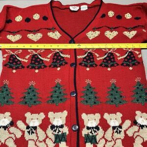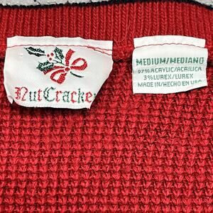 VTG Nutcracker Ugly Christmas Sweater Cardigan Teddy Bears Hearts Bells Size Medium. This does have a bit of metallic shimmer in some areas from the Lurex material. Made in USA.