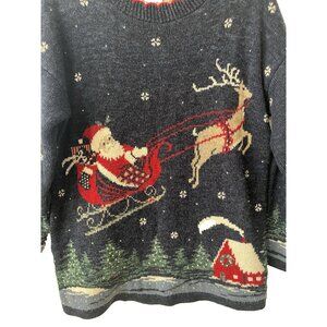 Vtg Nutcracker size S Grandmacore Ugly Christmas Sweater Santa Sleigh 39" Chest