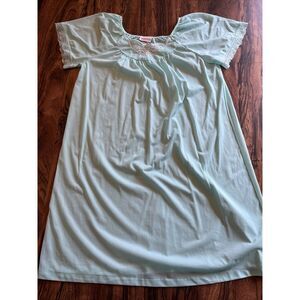 Vtg Nylon Kelly Reed Nightgown Nighty Mint Aqua Green Sz M Floral Embroidery