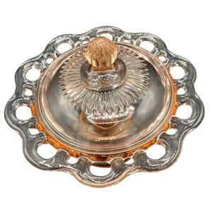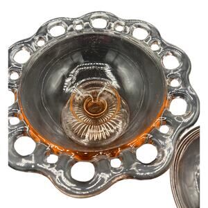 Vtg OLD COLONY Depression Glass Lace edge open lace pink footed bowl with lid