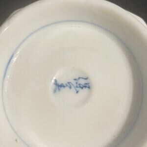 Vtg. OMC Japan Blue/White Flowers Porcelain Scalloped Rice Bowl