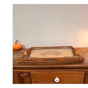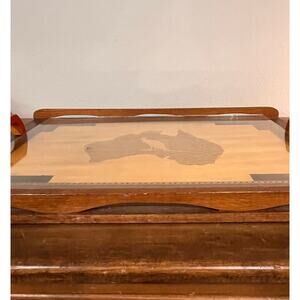 Vtg OOAK Wood Inlay Serving Tray Australia Map Kangaroo Design w/ Handles 18x13”