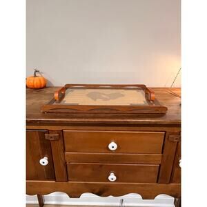 • Features: Inlaid Wood, Vintage, Handles, Covered with Clear Protective Glass Top