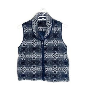 Vtg OUTBACK TRADING Co Women's Black Aztec Western Deep Pile Fleece Vest Sz L.