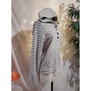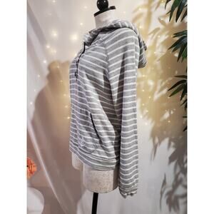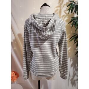 Vtg Obey Womens Striped Embroidered Anchor Henley Hoodie Sweatshirt Size S Gray White