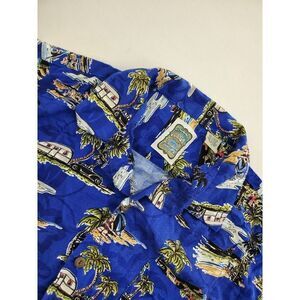 Vtg Ocean Current Camp Shirt Mens L Palm Tree Aloha Hawaiian Button Up SS Blue