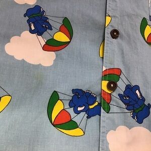 Vtg Ocean Front Shirt Men’s Size Small Elephant Parachute Print Buttons Blue