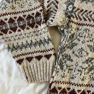 Sweater in good preowned condition Features crew neck, long sleeves, and wool blend