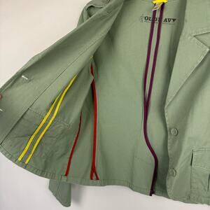 Vtg Old Navy Green Military Style 100% Cotton High Low Y2K Blazer Women Large