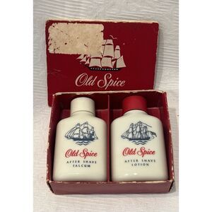 Vtg Old Spice Traveler Pack Glass Bottles After Shave Lotion & Talc #3365 NOS