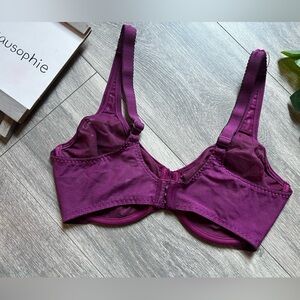 Vtg Olga Shiny Wine Floral Underwire Unpadded Second Skin Bra 35006 36D