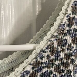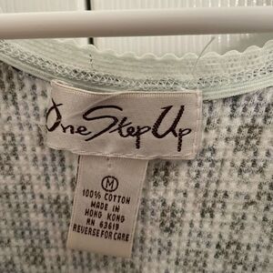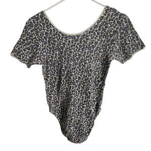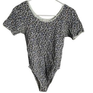 Vtg One Step Up Womens Bodysuit M Blue Floral Ribbed Knit Unitard Cottagecore