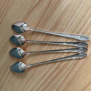 Vtg Oneida Evening Star Ice Tea Spoons Set Of 4 1950 Community Silverplated 7-1/