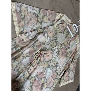 Vtg Only Hearts Floral Laced Robe Coquette Fairy Milk Maid Renaissance