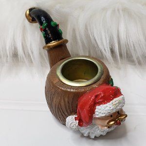 Vtg Oomco Christmas Ceramic Santa With Glasses Pipe Figural Taper Candle Holder