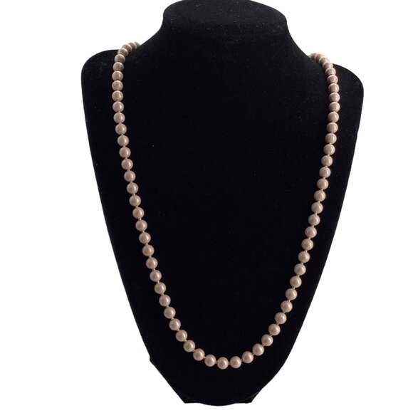 Vtg Oops A Daisy 80s Pale Pink Enamel Over Metal Long Necklace Faux Pearl 25"