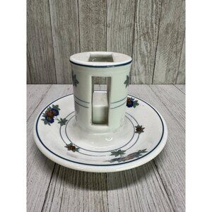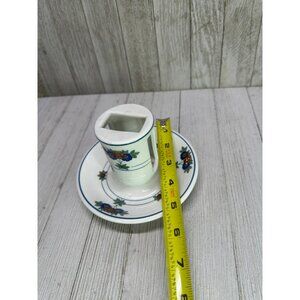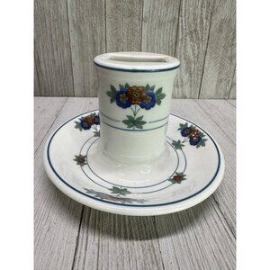 Vintage Syracuse Canterbury matchbox holder with ashtray, featuring a floral design. This collectible piece stands 4 inches tall, offering both decorative and functional use. Perfect for vintage decor enthusiasts or collectors.