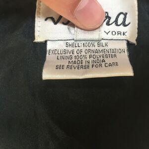 Ikara New York black silk evening cocktail jacket - dressy, sexy size XL - beaded with sequins embellishment. Fully lined in polyester satin. Padded shoulders - checkered beaded design. Hook & eye clasps all down the front. Gently worn - no damage or flaws.