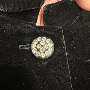 Vtg Opera Long Jacket Black Velvet Rhinestone Button Small