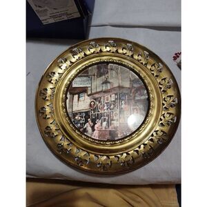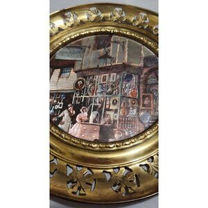 Vtg Original Solid Brass Punched Tin Leaf Picture Frame England Town Village Ant