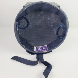 Vtg Original Touster Teentype Women's 3D Floral Blue Wicker Calot Hat Velvet Bow